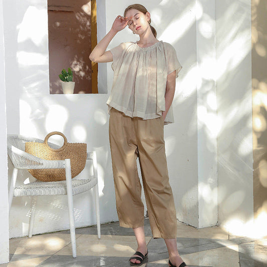 Eva Cotton Linen Summer Cropped Pants